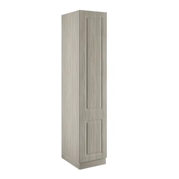 A urban oak single wardrobe with single rail, that comes with MDF classic square frontals in a luxurious super matt finish, a urban oak cabinet and soft close hinges.