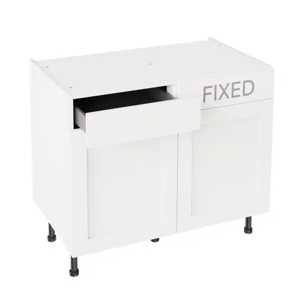 Kitchen Kit Flatpack Shaker Super Matt White 1000 LH Drawerline Base Cabinet - FKKH0579