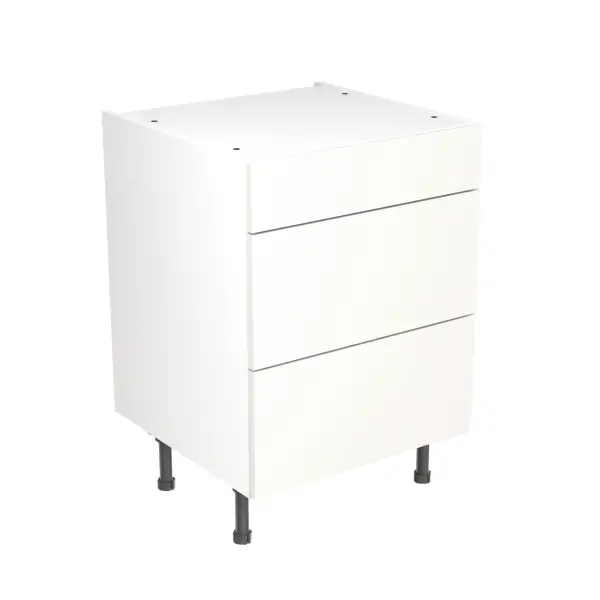 KitchenKit Slab Gloss White 600 3 Drawer Base Kitchen Cabinet Flatpack - FKKO3006